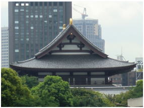 増上寺大殿や聖光寺本堂を見ると、斗栱は増上寺大殿では大仏様の挿肘木を洗練化したものを、聖光寺本堂では飛鳥時代の雲肘木と大仏様の挿肘木を組み合わせ洗練化したものを、軒反りは奈良朝のゆったりした曲線を、屋根は飛鳥時代の錣葺を採用している。ここには時代の要請による耐火構造(鉄筋コンクリート造)に適した鎌倉時代の大仏様の挿肘木を採用しながら、寺院建築の生命線である屋根の曲線は奈良朝の穏やかな軒反りを、また屹立性の高い飛鳥時代の錣葺屋根を採用して、あくまでも建築美を追い求めた、今までにない、誰も成し得なかった『新しい寺院建築の造形(新しい建築美)』が確立されていると考えることが出来るのではないだろうか。これこそが大岡實の功績であり、継承すべき建築美であり、大岡實の真骨頂と言えるのではなかろうか。 |