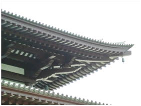 ・隅の伸びに関連して、軒の反りと軸部上部のわずかな反りの間を調節するため、斗栱の積上高をほんの少しずつ隅にゆくに従って高くする手法(いわゆる「ねじれ軒」の手法:筆者 注)