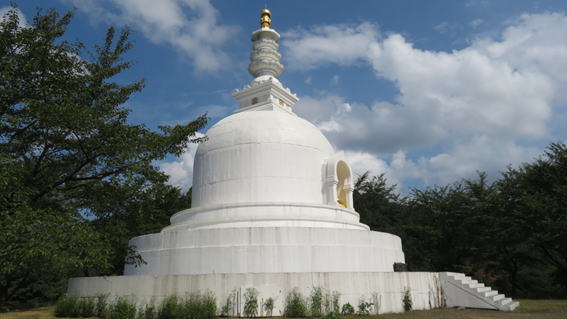 頂上付近に到着すると仏舎利塔が見えてきた |