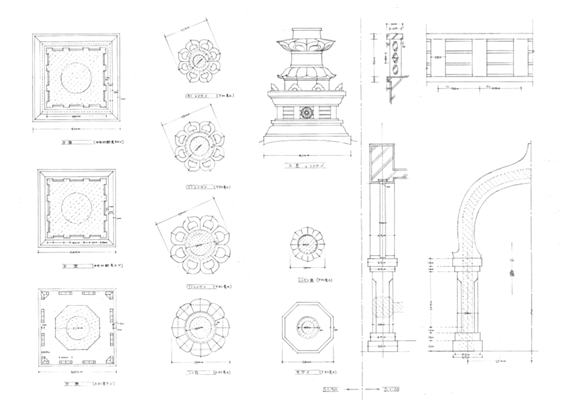 この図面では四方に仏贋があるが、実際には正面一ヶ所のみとなっている |